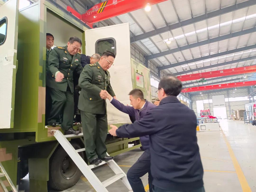 視察組參觀的第二站,來到了程力汽車集團應急保障車生產(chǎn)車間調研,對程力野外露營車、淋浴車、餐車、被服洗滌車、電源搶險車、排澇車等軍民兩用裝備的生產(chǎn)工藝與產(chǎn)能,表示出濃厚的興趣;當首長們了解到中國神舟十三返航英雄們,所用的地面后勤保障醫(yī)監(jiān)醫(yī)保醫(yī)療專用車,也是程力公司所生產(chǎn)的情況后,大加贊許。